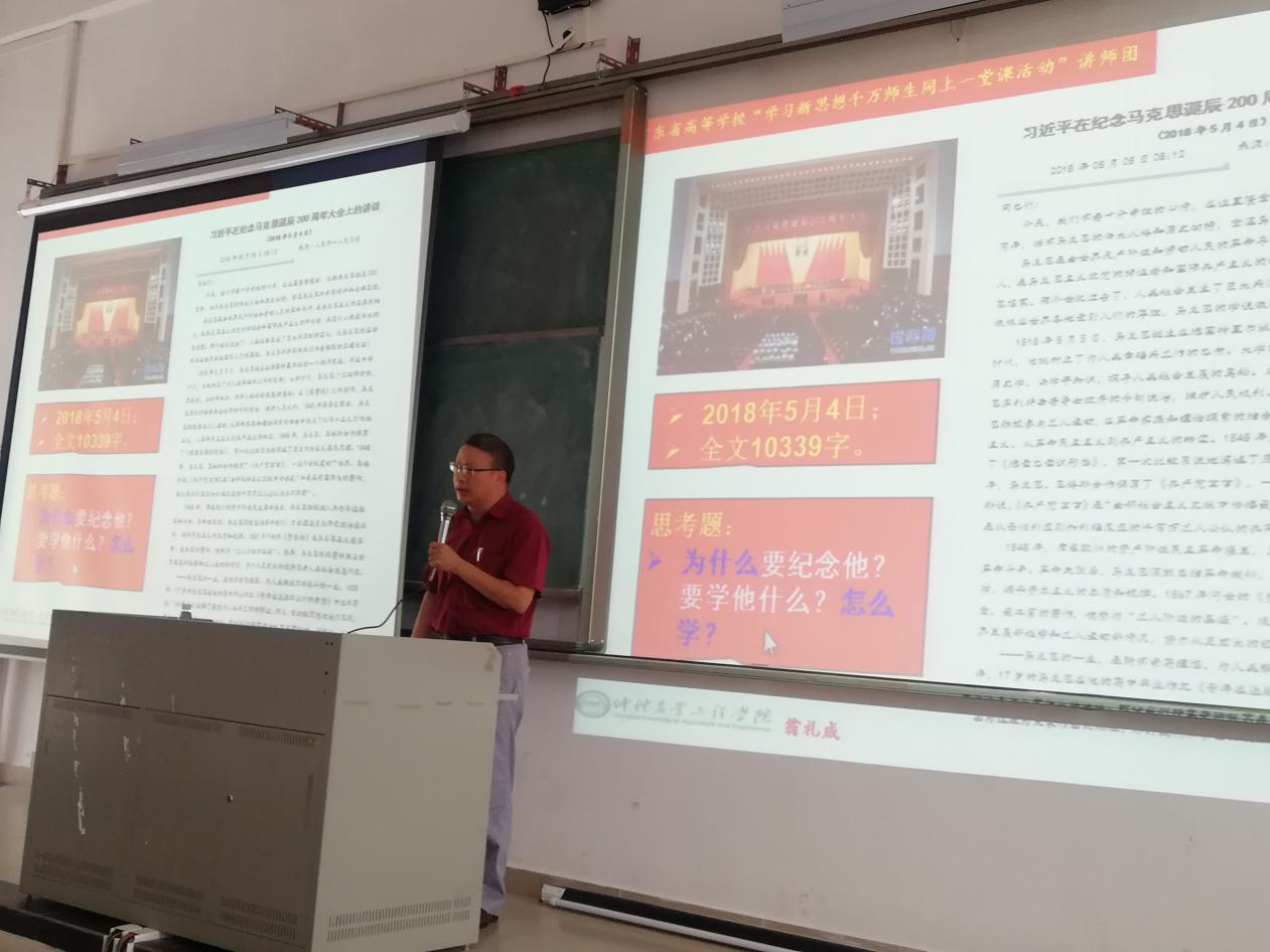根据广东省教育厅《关于组织开展“学习新思想千万师生同上一堂课活动”的通知》要求,围绕习近平总书记在纪念马克思诞辰200周年大会上与北京大学师生座谈会上重要讲话精神的丰富内涵和精神实质,面向广大师生讲清楚总书记重要讲话的学理支撑和理论蕴涵,讲清楚新时代教育工作的使命担当和广大师生的责任要求,6月20日下午,党委学生工作部、永利集团304在白云校区D2报告厅共同举行“学习新思想千万师生同上一堂课”活动。党委学生工作部部长李伟东教授、永利集团304党总支书记翁礼成教授分别为师生授课。此次活动由永利集团304副院长秦抗抗副教授主持。