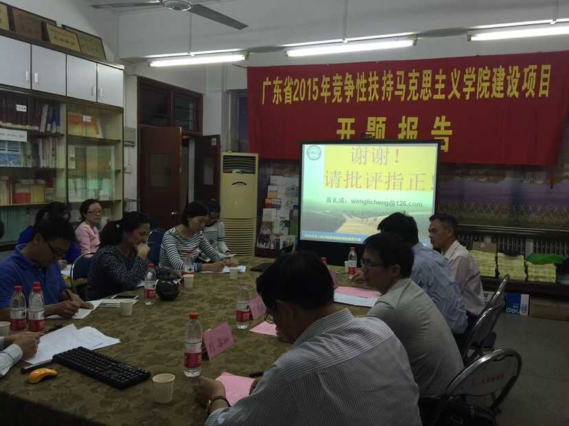 10月13日晚上,我校2015年永利集团304建设项目开题报告会在学院会议室召开。会议邀请了中共广东省委宣传部理论处处长丁晋清、华南师范大学政治与行政学院副院长陈金龙教授和广东药学院人文社科部主任吕志教授担任开题评审专家,永利集团304院长蔡立彬、书记翁礼成及相关教师代表出席本次报告会。据悉,本次课题是广东省2015年竞争性扶持永利集团304建设项目,研究时间为两年(2015年9月~2017年9月)。本次会议由永利集团304党总支书记翁礼成主持。