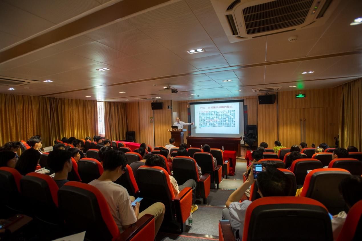随后,王振中研究员来到了英东楼111学术报告厅,作德新讲坛第十八讲报告“关于乡村振兴的思考”,讲座由学校党委书记宋垚臻教授主持。宋书记指出,实施乡村振兴战略,是党的十九大作出的重大决策部署,由习近平总书记在党的十九大报告中正式提出;王振中研究员的辅导讲座,将有助于师生们认真学习、深入领会、全面贯彻习近平总书记关于实施乡村振兴战略重要讲话精神;要求全校上下深入学习贯彻习近平总书记重要讲话精神,结合学校实际贯彻落实《乡村振兴战略规划(2018-2022年)》,推动学校高质量发展。