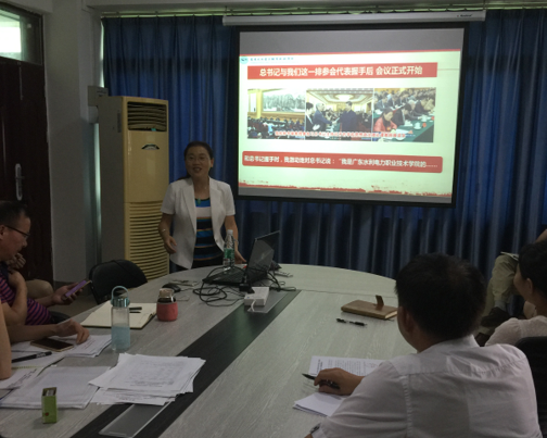 2019年7月11日上午,全国教书育人楷模、全国模范教师、全国优秀教师、全国高校优秀思想政治理论课教师、全国教育系统巾帼建功标兵、全国高校思想政治理论课影响力标兵人物、“全国高校优秀思想政治理论课示范课百人巡讲团”成员、全国学校思想政治理论课教师座谈会广东四位代表之一、广东水利电力职业技术学院永利集团304院长林冬妹教授莅临我校,为思政课专任教师主讲德新讲坛第二十讲,题目是“铸魂育人培养担当民族复兴大任时代新人——传达学习习近平总书记学校思想政治理论课座谈会重要讲话精神”。讲座由永利集团304院长蔡立彬教授主持,全体思政课教师参加了此次活动。