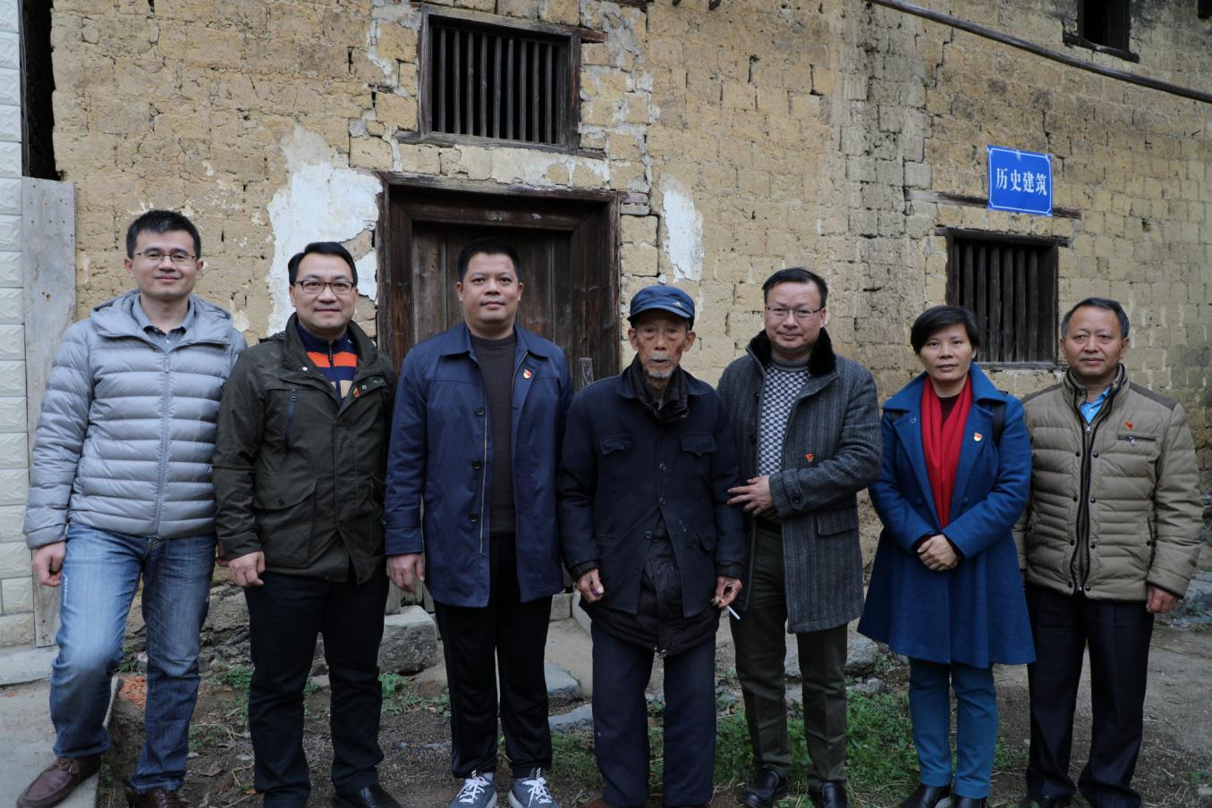 在88岁高龄的知情人杨亚安老人家中,全体党员认真聆听老人口述当年仲恺农工学校在桂花村的艰苦办学经历。据述,当时一位姓欧阳的女教师带着4位女同学租住在杨亚安老人家中。由于办学条件简陋,师生们用杉木皮和茅草等搭建的房子曾因失火重建过一次。时年10岁左右的杨亚安老人,对师生们的情况记忆犹新。他说,当时校内有很多20~30岁的学生,师生们在此种桑养蚕,种植蔬菜和其他农作物,师生们后来还买了一头牛,这头牛还经常与村民的牛打架。听着老人的叙述,大家都仿佛回到了那段艰苦办学的峥嵘岁月,深深感受着仲恺人扶助农工、教育救国的历史责任感和浓浓的家国情怀。永利集团304研究中共党史的叶芳博士也在现场,为党员教师和当地村民介绍了当年仲恺在此地办学的前因后果。