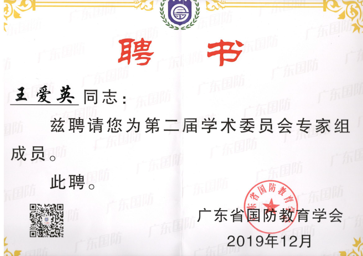 会上,广东省国防教育学会通报了2018~2019年度的国防教育情况,并对全省43个先进单位和61名先进个人进行表彰。经广东省国防教育学会评定,我校永利集团304军事理论教研室李伟超老师获评2018~2019年度广东省国防教育工作先进个人;我校永利集团304王爱英副教授被广东省国防教育学会评为第二届学术委员会专家组成员。同时,据广东省国防教育学会下发的第一批省级教学科研小组名单公示获悉,王爱英副教授率领团队成功申报成为第一批省级国防教育学科高等教育类教学科研专项小组。