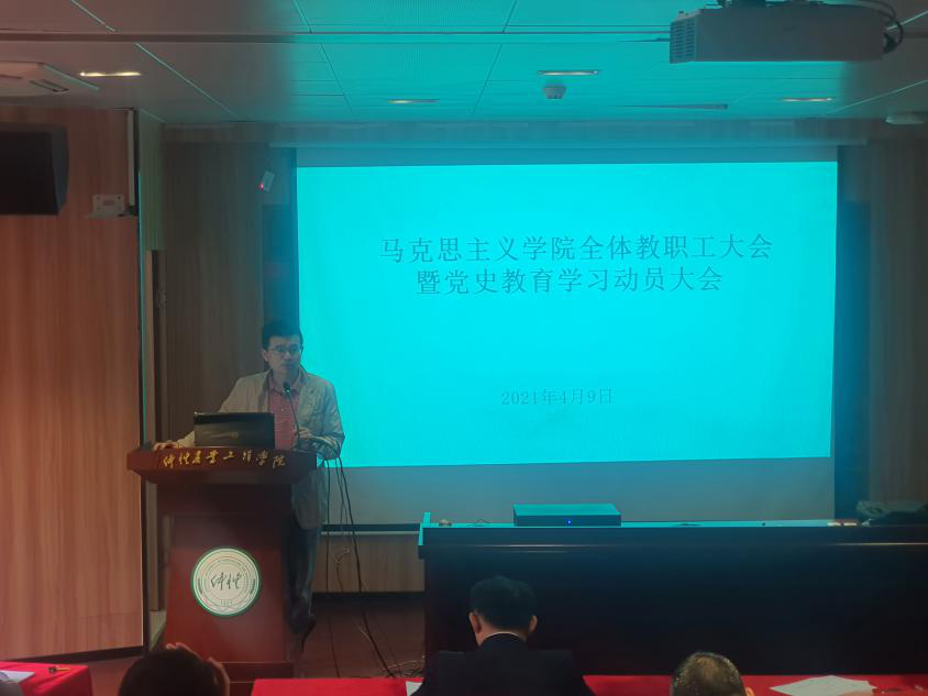 会议第二个议题由蔡立彬同志作党史学习教育动员讲话。他强调,习近平总书记在党史学习教育动员大会上的重要讲话,深刻回顾和总结了我们党百年波澜壮阔的奋斗历程和宝贵经验,深刻阐明了党史学习教育的重大意义、重点任务和工作要求,为我们指明了前进方向,提供了根本遵循。通过打造党史学习教育的主阵地,从为何学、学什么、怎么学三个方面阐释,永利集团304教师应当主动积极地承担起党史学习教育的任务。不仅要通过党史学习教育加强自身党性修养,进而提升思政课教学的导向性、内容的丰富性、教学的政治性,更要积极发挥思政课堂作为党史教育、研究、宣传的重要阵地的作用。将党史学习教育与疫情防控、思政课教学结合起来,推动党史学习教育进课堂、进学生头脑,高质量完成立德树人、铸魂育人的时代使命。