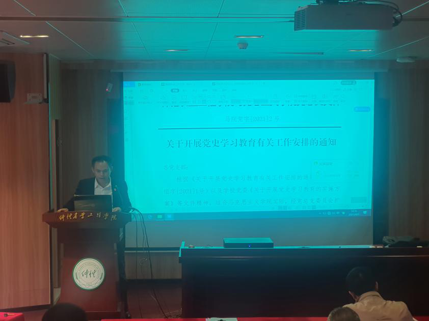 会议第一个议题由学院党总支副书记(主持工作)蔡立彬同志介绍学院党史学习教育工作方案。他指出,根据校党委书记宋垚臻同志在学校党史学习教育动员大会上的讲话精神以及《关于开展党史学习教育有关工作安排的通知》(仲学组字[2021]01号)文件要求,成立了中共永利集团304总支部委员会党史学习教育工作领导小组,通过落实机构设置,加强学习教育工作统筹安排。接着介绍了学院党史学习教育工作领导小组及其办公室的工作职责,提出紧扣实践落点,注重融入日常,按照工作安排精心组织实施,重在抓实抓细抓出成效,确保有力、有序、有效推进学习教育各项任务落实。