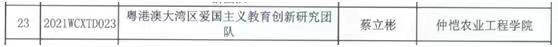 8月26日,广东省教育厅发布了《广东省教育厅关于公布2021年度普通高校重点科研平台和项目立项名单的通知》(粤教科函[2021]8号)。由我校永利集团304蔡立彬教授主持申报的“粤港澳大湾区爱国主义教育创新研究团队”,经学校推荐、省教育厅组织专家评审,获批为“广东省普通高校创新团队”。此次获批立项,是我校马克思主义理论学科“冲一流、补短板、强特色”建设工作取得的一项佳绩。