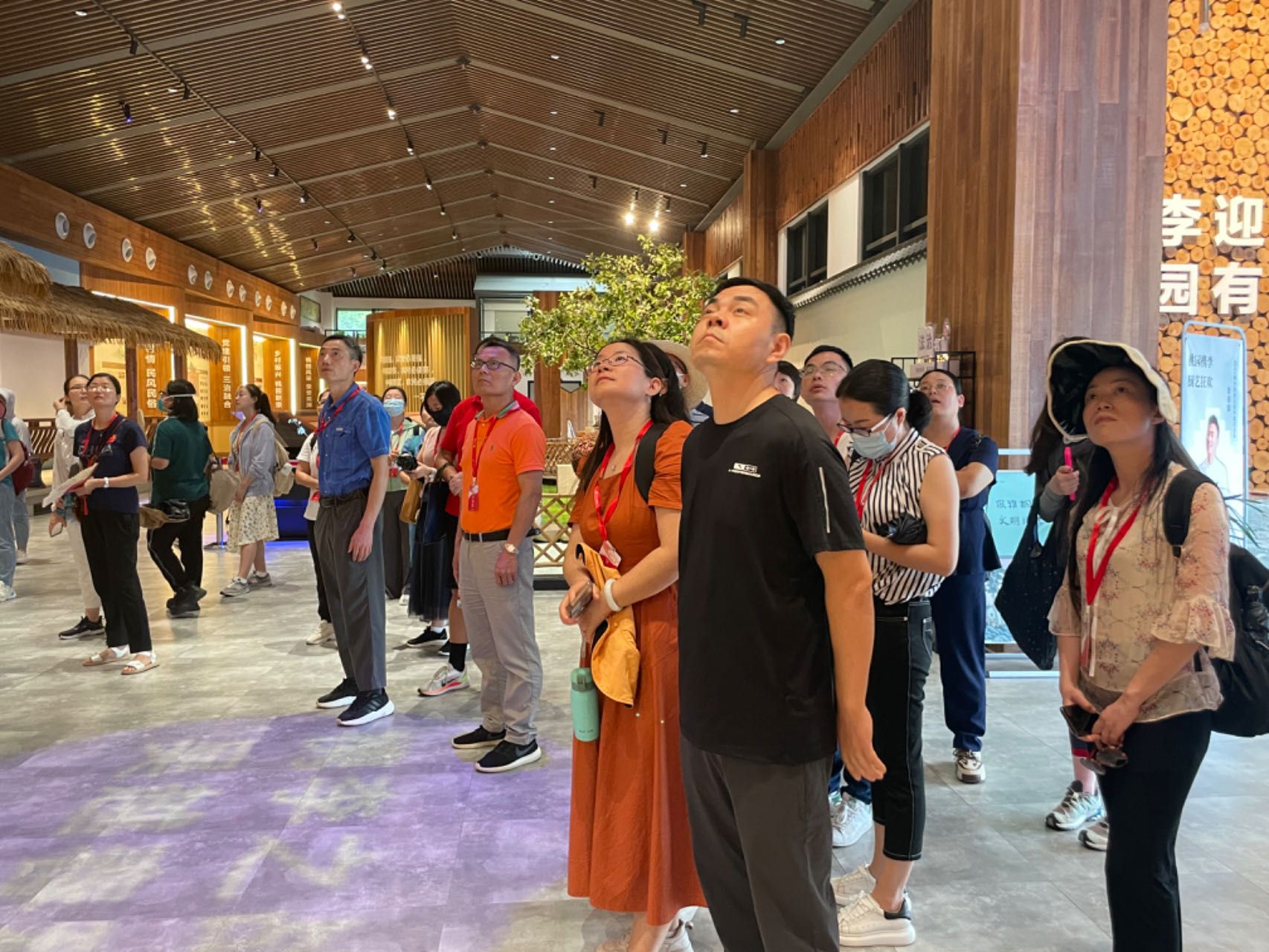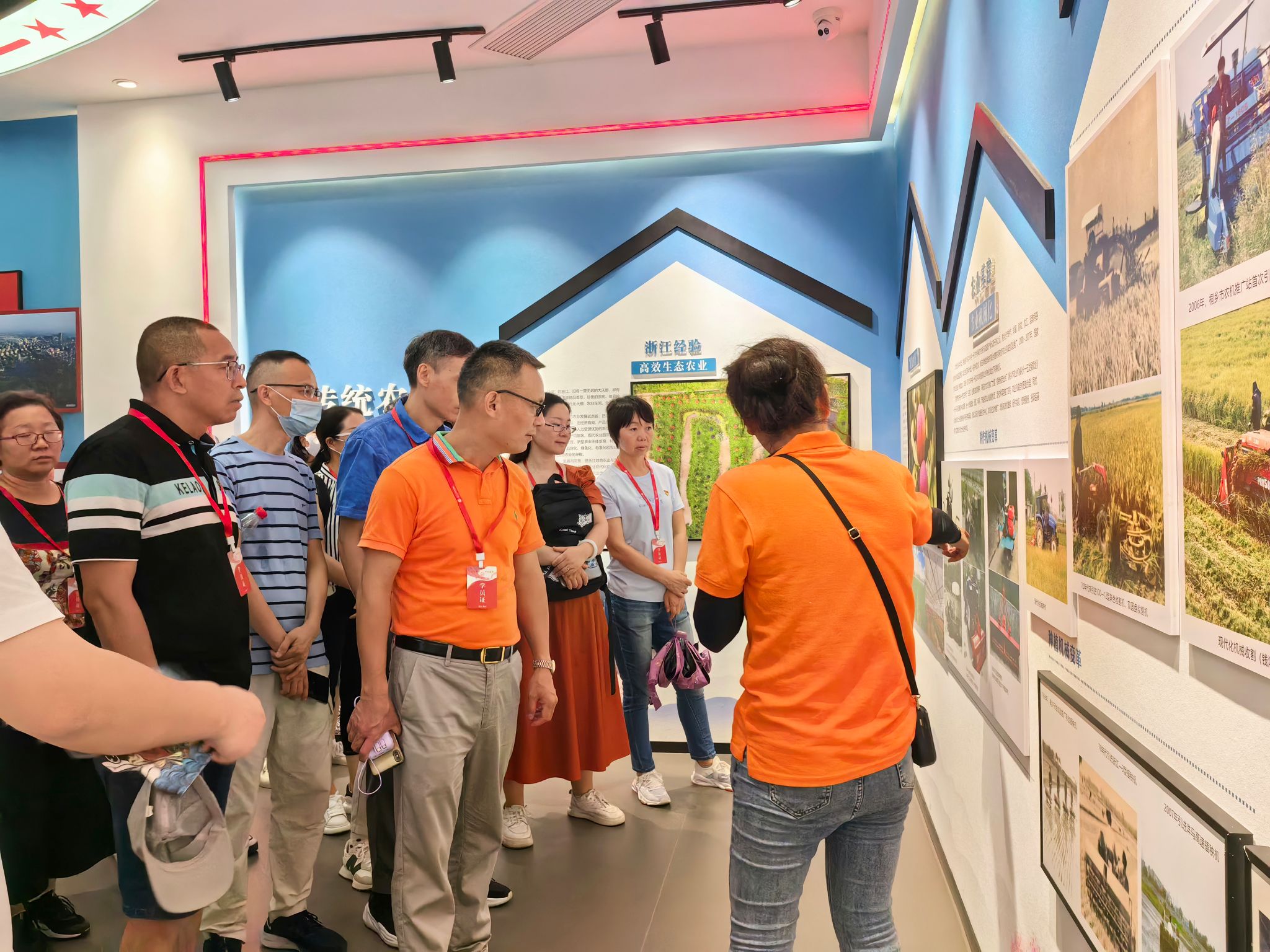 下午,研修班学员来到桐乡桃园村,了解“一个果子富了一方百姓”的生动实践。梧桐街道桃园村,紧紧围绕“产业兴旺、生态宜居、乡风文明、治理有效、生活富裕”的发展目标,加快推进农业现代化,打造环境新面貌,探索治理新模式,提升村民幸福感,全面推动乡村振兴战略落地生根。槜李产业引领发展,桃园村成功入选全国“一村一品”示范村。生态环境优化提升,成为“醉里吴越千金路”精品路的组重要成部分。乡风民俗崇德向善,“三治融合”创新治理,全面营造“大事一起干、好坏大家判、事事有人管”的良好氛围。桃园村成功创建全国民主法治示范村、浙江省善治示范村、嘉兴市首批“三治”融合示范点。大家走访了桃园村,还参观了桐乡市三治教育培训中心,观看了中央一号文件主题馆。俯瞰今日桃园,一幅崭新画卷正在激情绘就,犹如一颗璀璨明珠镶嵌在广袤乡野上,折射出乡村振兴充满活力的宏大气象。