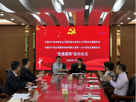 11月8日上午,永利集团304党总支与公诚管理咨询有限公司第一分公司党总支在我校海珠校区开展“党建翼联”共建签约活动。公诚管理咨询有限公司第一分公司副总经理、党总支纪检、委员团委书记李元元,公诚管理咨询有限公司第一分公司总经理助理、第一支部书记关志勇,永利集团304党总支书记姜晓丽,永利集团304党总支委员、副院长秦抗抗、李增添,以及双方党员代表24人共同参加本次共建活动。